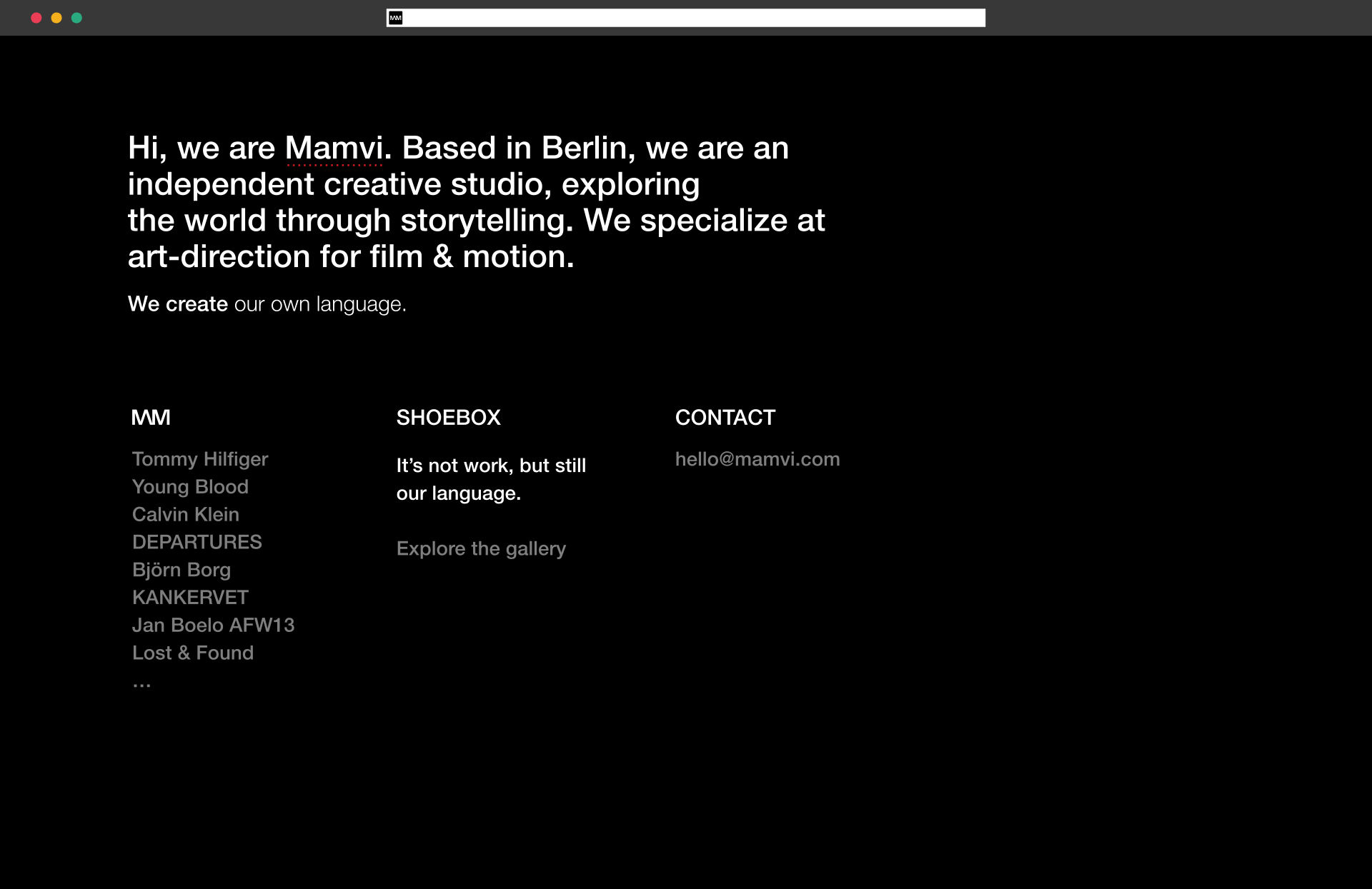 Mamvi was set up as a lean but ambitious creative studio, built on collaboration and experimentation. Its structure made it possible to take on a wide range of projects (from global brands to cultural festivals) while always keeping creative storytelling at the core.