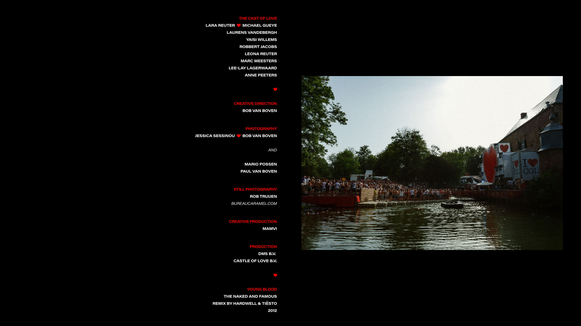 The collaboration positioned Castle of Love as an early pioneer in narrative-driven festival filmmaking. Young Blood and Lost & Found became defining pieces of the festival’s identity, setting a precedent for storytelling in an industry dominated by highlight reels. The work helped shape a unique creative language that stood out across the Dutch festival landscape, while laying early groundwork for my ongoing exploration of narrative, experience, and emotional design.